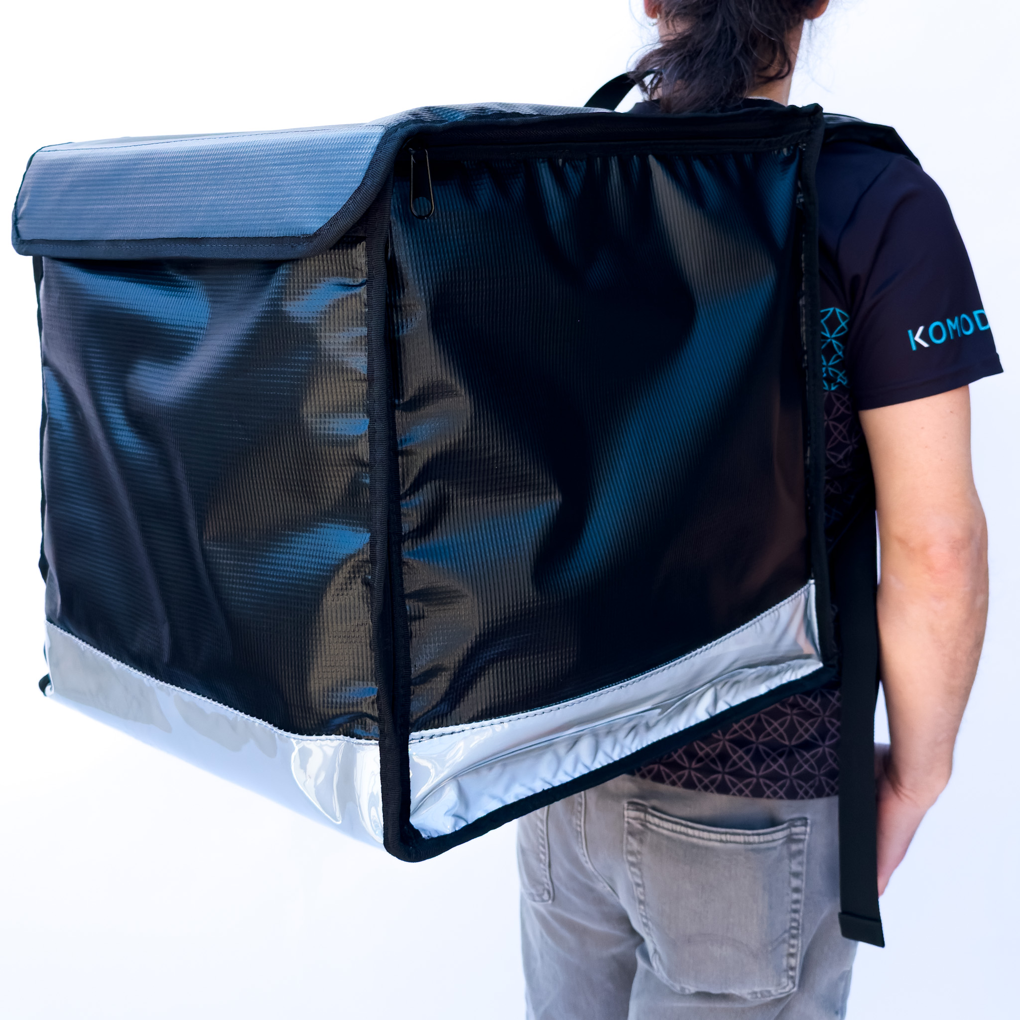 La Mochila de Repartidor L 50×50 combina capacidad y estructura rígida para entregas de comida, pizzas y paqueteria. Confeccionada en tela engomada impermeable y relleno de policarbonato, mantiene su forma y protege su contenido. Sus tirantes cómodos y espalda transpirable aseguran confort durante el reparto. (el estampado en el bolso es solo ilustrativo)